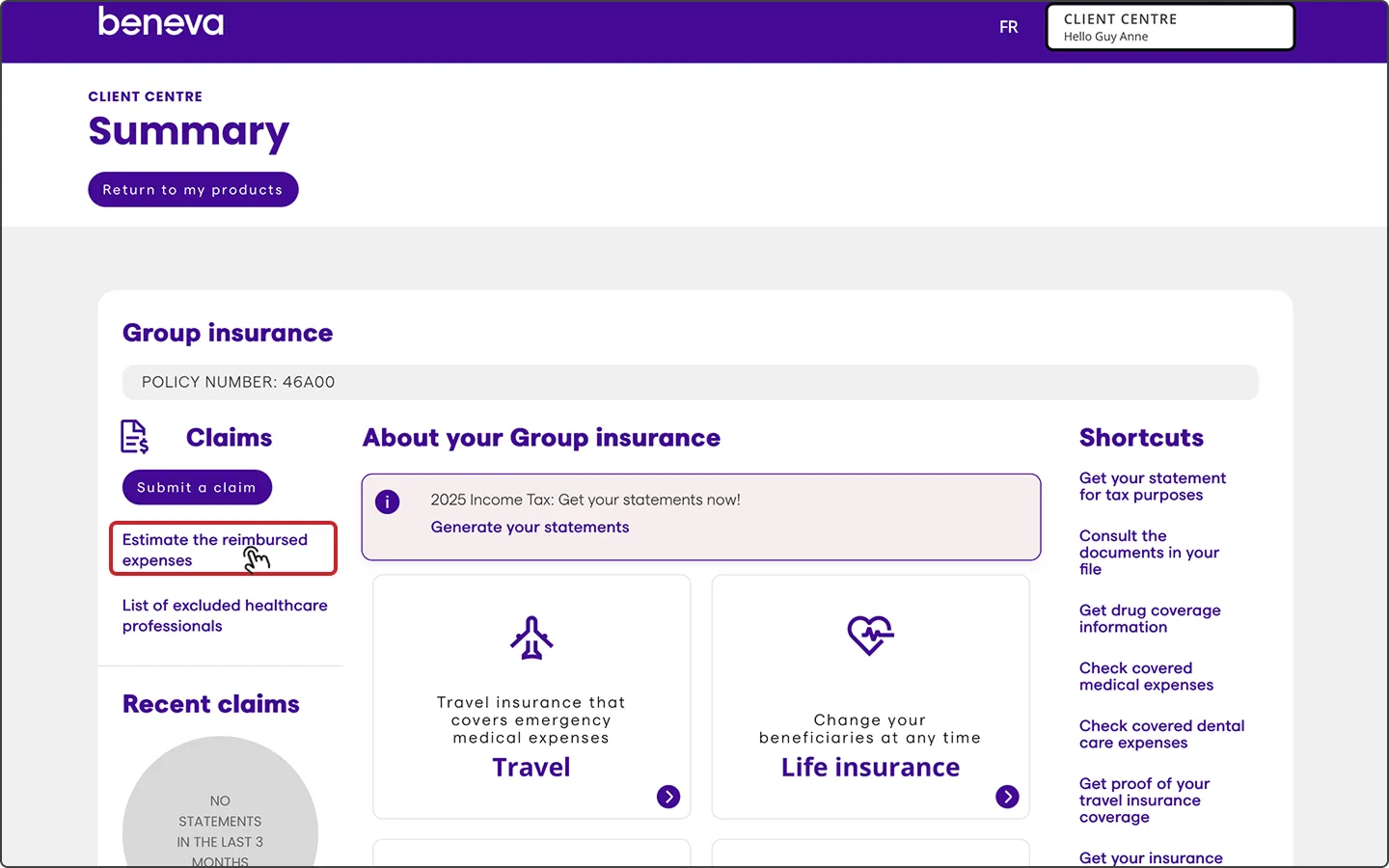 Get healthcare reimbursement information in the tool available in the Client Centre.